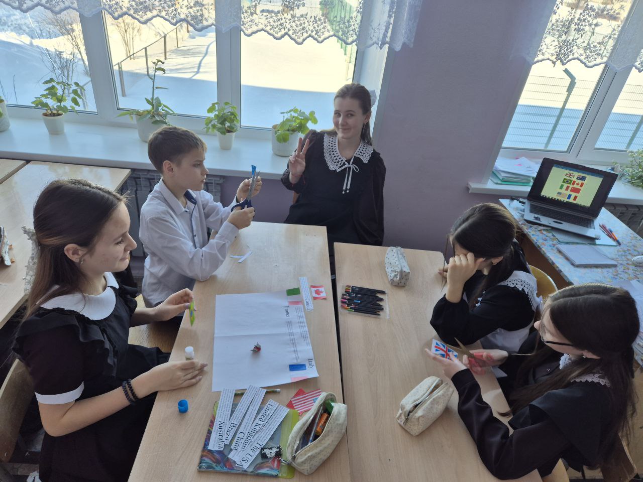 В нашей школе прошло увлекательное внеурочное занятие «Путешествие по англоговорящим странам», организованное учителем английского языка Бекчуриной Луизой Равшановной. Учащиеся разделились на команды и участвовали в викторине, находили страны на карте, вспоминали достопримечательности и рисовали плакаты.