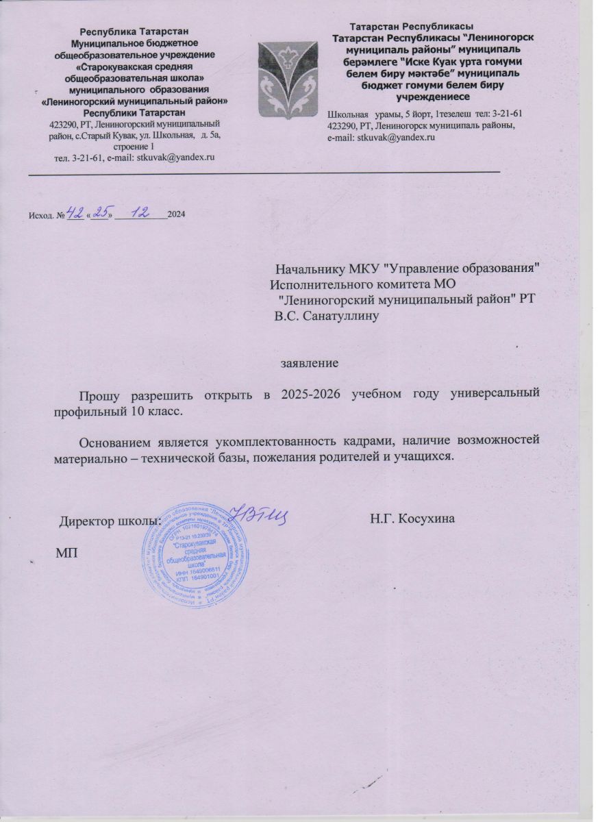 муниципальное бюджетное общеобразовательное учреждение «Старокувакская средняя общеобразовательная школа» муниципального образования "Лениногорский муниципальный район" Республики Татарстан