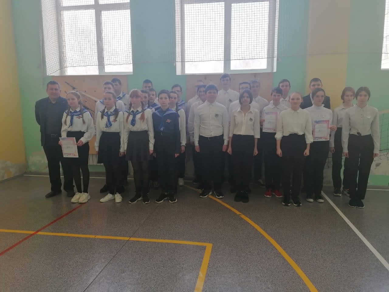 25 февраля в школе прошел смотр строя и песни, в рамках мероприятий, посвященных Дню защитника Отечества. Смотр проходил в три этапа: учащиеся 1 – 4 класса, учащиеся 5-7 класса, учащиеся 8-11 класса. Учащиеся показали элементы строевой подготовки отряда. Лучшие отряды были награждены грамотами.