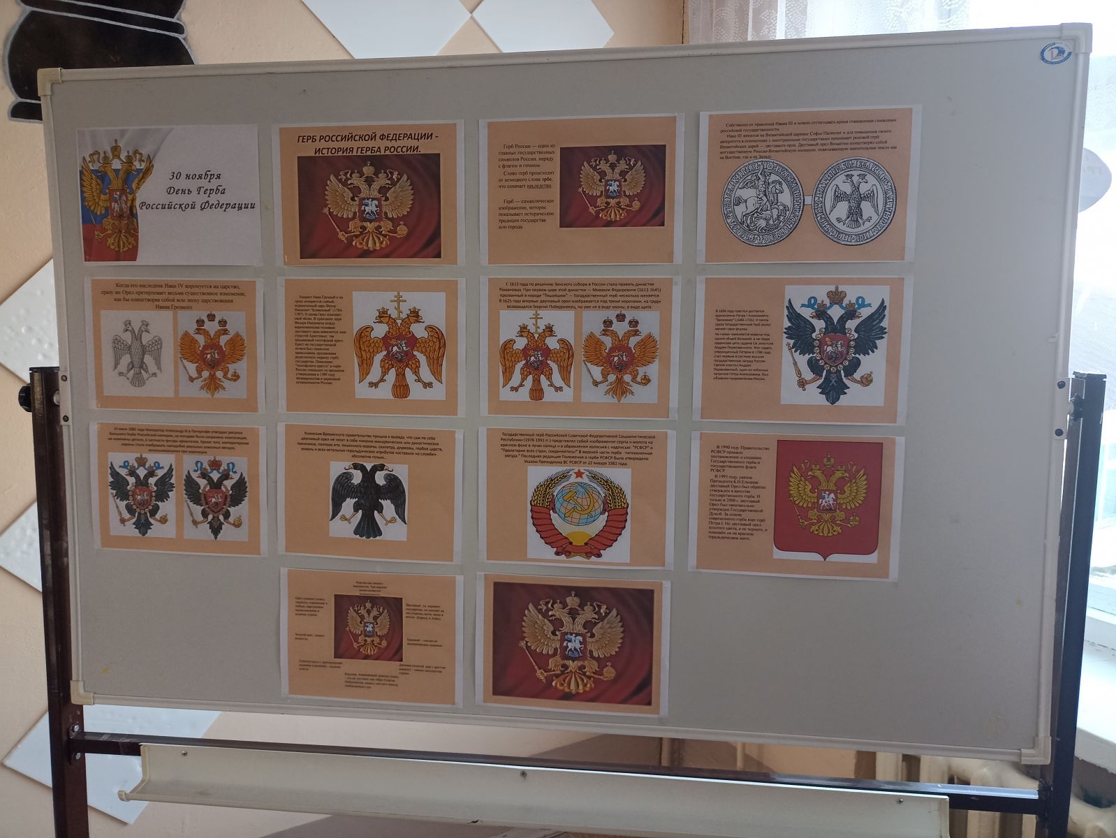 - Информационный стенд «История Государственного герба Российской Федерации» подготовили педагог организатор и движение первых.