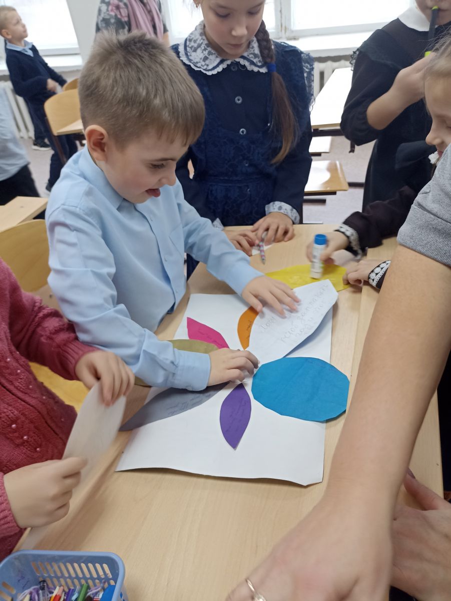 -коллективно-творческое дело с обучающимися начальной школы, где они составили свои «семицветики» и написали свои желания.