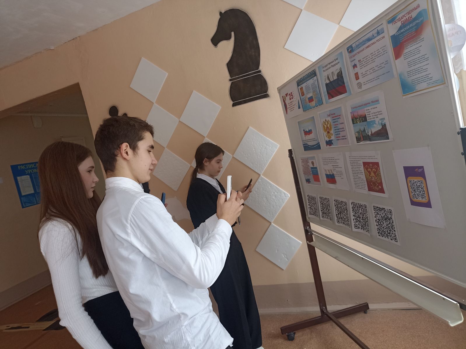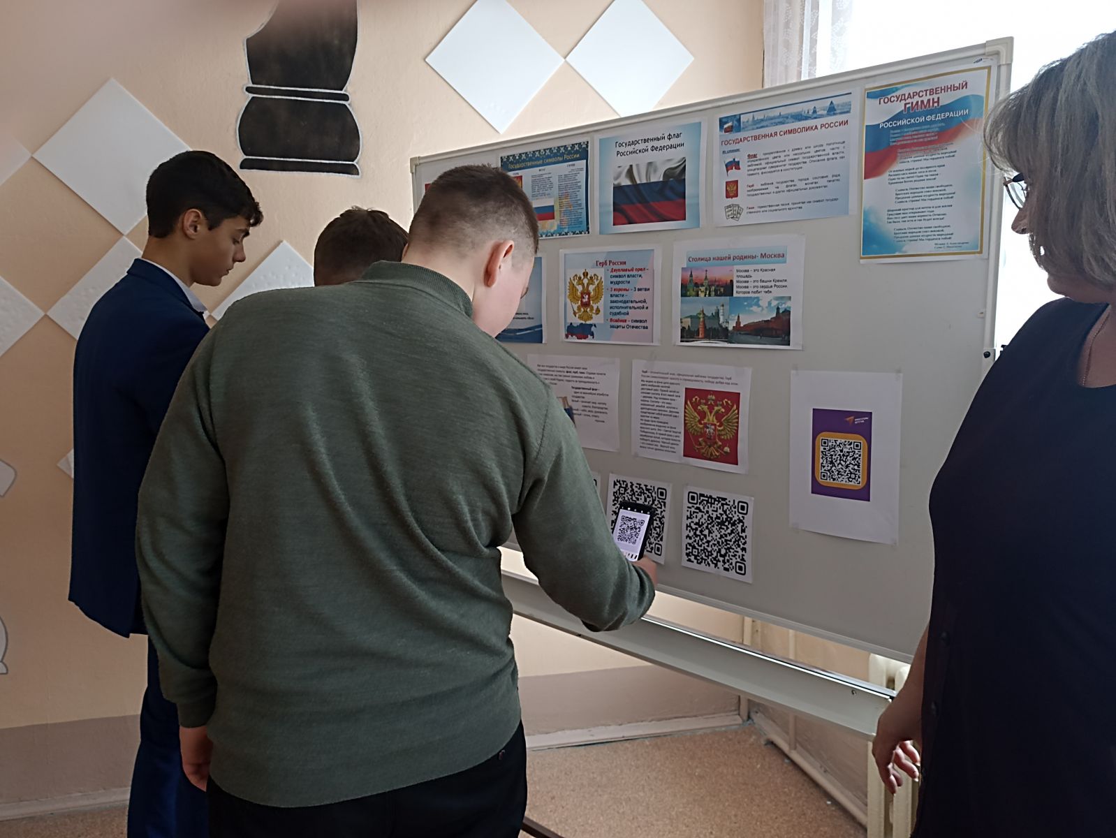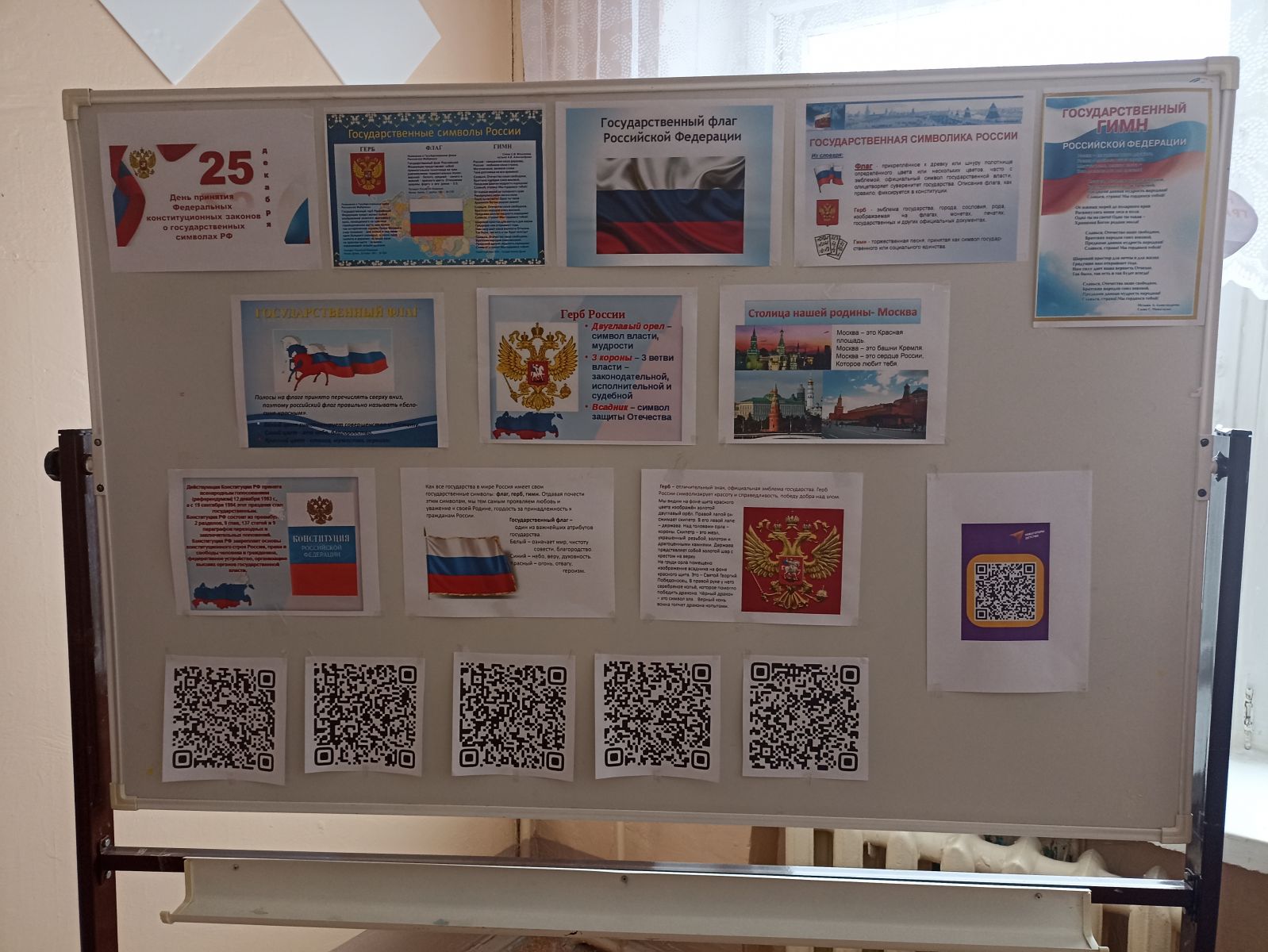 В рамках этой знаменательной даты советник директора по воспитанию провела интеллектуально-развлекательный QR-квест с 22 по 25 декабря. Участниками квеста стали обучающиеся 7-10 классов. QR-коды с зашифрованными вопросами находились в общедоступных местах школы. Задачей участников было отсканировать коды и правильно ответить на вопросы, вписать ответы в бланки и предоставить их советнику по воспитанию, проверить свои знания. Следующее мероприятие интеллектуальный марафон «Государственные символы России на основе которого учащиеся расширили представления об истории официальных символов страны (герб, гимн, флаг), отражающих её суверенитет, единство прошлого и настоящего российской государственности, историческую самобытность нации, объединяющего начала государства для всех граждан.