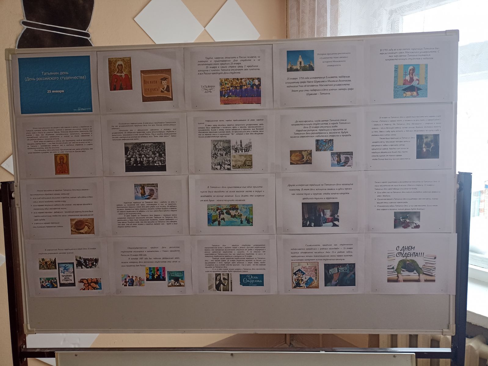День студентов в нашей стране традиционно отмечается 25 января. Именно в этот день императрица Елизавета подписала указ «Об учреждении Московского университета». А всероссийским этот праздник стал уже при императоре Николае I, который повелел праздновать 25 января как день всех высших учебных заведений в стране. А вот название «Татьянин день» праздник получил в честь святой мученицы Татьяны Крещенской. Так как 25 января часто приходятся на конец сессии, студенты до сих пор зажигают свечи и молятся святой Татьяне о помощи в учебе и просвещении. Ну, а на территории МГУ даже работает домовый храм — церковь святой Татьяны. В рамках празднования «Дня российского студенчества» советником директора по воспитанию проведены различные мероприятия.