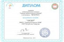 Лидеры. Команда учителей начальных классов "Лидеры" в составе Акимовой Нины Владимировны, Антоновой Татьяны Анатольевны и Бекчинтаевой Раисы Равильевны приняли участие во II межрегиональном конкурсе школьных методических объединений учителей начальных классов республик Татарстан, Башкортостан, Брянской, Оренбургской, Самарской, Ульяновской областей и стали лауреатами межрегионального конкурса "Турнир педагогических команд" в номинации "Визитка". Поздравляем наших коллег и желаем им дальнейших творческих успехов.
