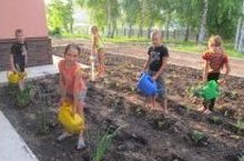 К работе на участке дети приучаются с младших классов. Семенной материал для цветника дети заготавливают сами. Малыши уже полностью высадили различные сорта петуний, астр, бархатцев, циний на свои клумбы. Сейчас ребята активно поливают свои участки. У учащихся воспитывается ответственность за порученное дело, они привыкают начатое дело доводить до конца.