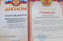 24 мая от Управления образования Дипломом награждены ШМО учителей естественно-математического цикла в номинации «Творческий подход» муниципального конкурса «Лучшее методическое объединение учителей естественно-математического цикла», а также Почетной Грамотой учитель начальных классов Бекчинтаева Раиса Равильевна за успехи в организации и совершенствовании учебного и воспитательного процесса.