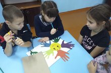 С огромным старанием учащиеся выполнили коллективную аппликацию «Солнышко добра».