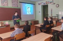 Фәррахова Д.Р. кызы 5-6 нчы сыйныф укучылары өчен Муса Җәлилгә багышланган сыйныф сәгате уздырды. Бу көнне укучыларның бөтен игътибары Герой-шагыйрь һәм аның белән бергә 10 чордашы узган катлаулы тормыш юлын өйрәнүгә юнәлдерелгән иде. Муса Җәлилнең сугышка кадәр булган тормыш юлын укучылар викторина сораулары аша искә төшерсәләр, 1942-1944 дәһшәтле елларын исә презентация аша өйрәнүне дәвам иттеләр. Сыйныф сәгате башында укучылар авторның башлангыч сыйныфларда ятланган, укылган балалар өчен шигыръләрен сөйләсәләр, ахырында тулысы белән «Моабит китаплары»нда урын алган әсәрләренә чумдылар. «Яшь ана», «Вәхшиләр», «Кызыл ромашка» шигырьләрен аеруча ярсу, образлы итеп укый алдылар укучылар. Җәлилчеләр арасында Абдулла Алиш исемен ишетү кайбер балалар өчен көтелмгәнлек булды. Шулчакта «Сертотмас үрдәк», «Куян кызы» әсәрләрен рус телендә сәхнәләштерүләрен дә искә төшерделәр