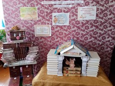 28 января в нашей школе была проведена очередная работа с ребятами 8 класса приуроченная Месячнику родного языка. С библиотекарем Фарраховой Д.Р. они создали архитектурные объекты: здание библиотеки и робота, который призывает чтению книг. При строении объектов были использованы энциклопедии и многотомная серия художественной литературы на родном для учащихся русском языке. Нужно отметить, что при оформлении выставки ни одна книга не пострадала.