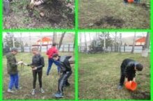 В рамках республиканской природоохранной акции «День посадки леса» 5 мая 2018 года в школе было проведено озеленение территории школы и высажена аллея Победы. Школьники посадили на территории школы ели и сосны.