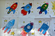 Иҗат эшчәнлегенең максаты: балаларны космонавтика көне бәйрәме белән таныштыруны дәвам итү . Балаларны космоста оча торган ракета ясарга өйрәтү, рәсемдә төрле образлар тудырырга өйрәтегез. Ясалган образның матурлыгын күрергә өйрәтү. Әйләнә-тирә мохитне эстетик яктан бәяләү сәләтен формалаштыру, иҗади сәләтләрне, хәтерне, игътибарны үстерү. Балаларның космик очыш турындагы төшенчәләрен киңәйтү.