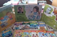 Сегодня в нашем уголке родного языка появились новинки: стенды с портретами поэтов, энциклопедии различных областей познания, методические пособия. / Бүген безнең туган тел почмагында яңарышлар барлыкка килде: шагыйрьләр портретлары, төрле белем өлкәләре энциклопедияләре, методик кулланмалар.