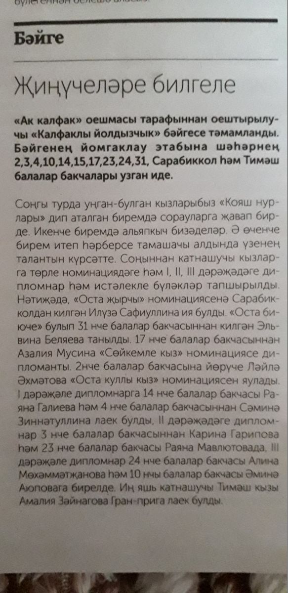 На финальном III туре конкурса "Калфаклы йолдызчык" наша воспитаница Сафиуллина Илюза стала номинанткой "Оста җырчы".