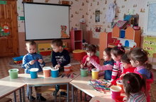 На занятии аппликации мы отремонтировали стаканчики для карандашей (обновили наружний декор) и рассортировали карандаши.