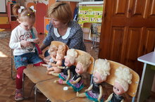 Самый маленький новичок Ралина проходит адаптацию в детском саду, в этом ей помогают наши воспитанники и сотрудники.