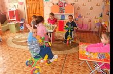 В течение дня дети играют разными игрушками.Во время игр они знакомятся с различными профессиями. Для этого в детском саду созданы все условия.