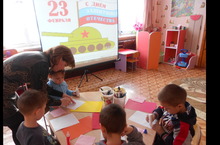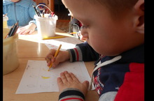 На занятии с детьми старшего дошкольного возраста предложено детям обвести, нарисовать рисунки по пунктирам и раскрасить их. Этим методом развивается логическое мышление ребенка, моторика рук и подготовка к письму.