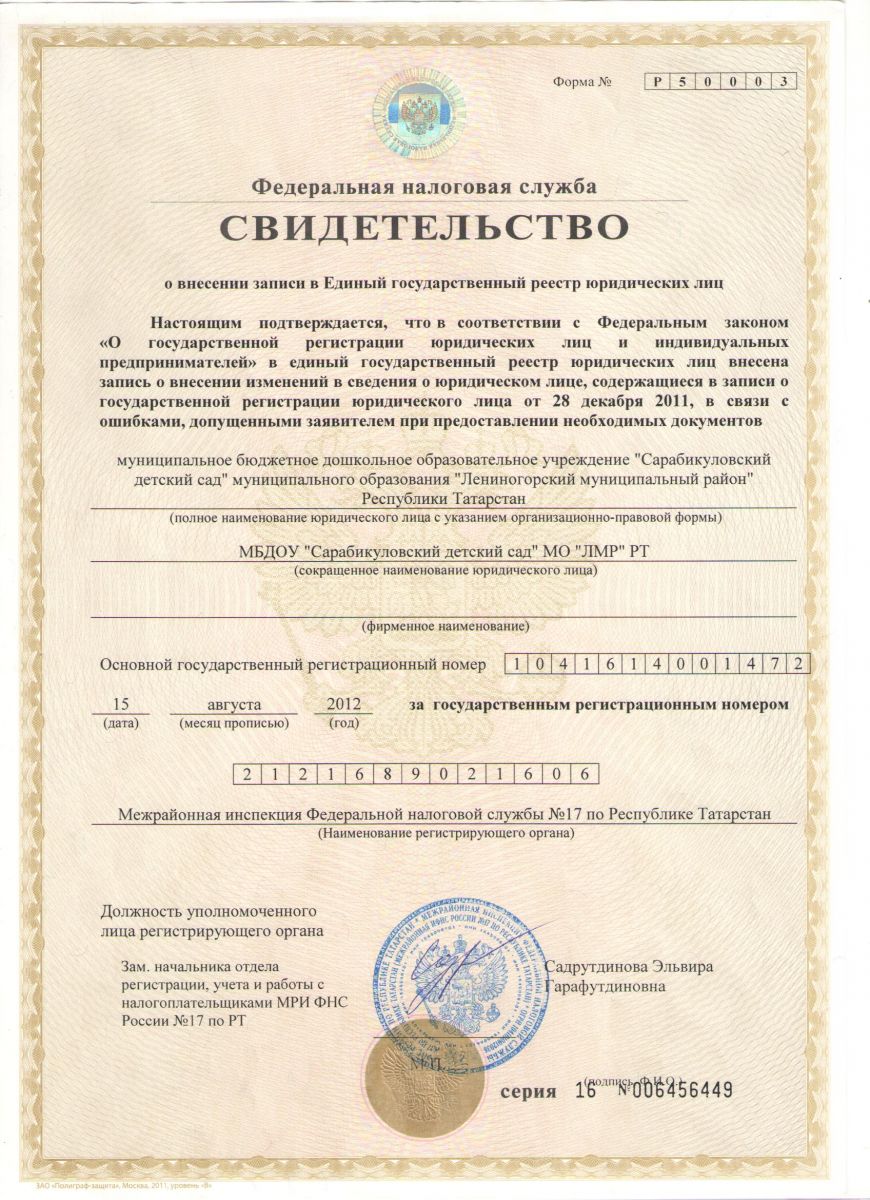 | Короткое название: | МБДОУ "Сарабикуловский детский сад" МО "ЛМР" РТ |