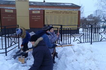 Мәктәп укучылары бүген бергәләшеп һәйкәл янын кардан чистарттылар.
