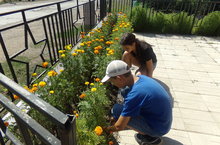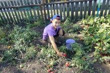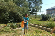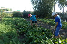 Укучылар җәйге практикада ашханә өчен чөгендер һәм кишер эшкәртәләр.