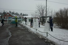 Мәктәбебездә яңа ел бәйрәменә әзерләнү башланды. Өлкән сыйныф укучылары сыннар ясау өчен татрмаларга карлар тутырдылар.