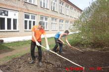 Мәктәп бакчасында язгы эшләр дәвам итә. Бүген укучылар чәчәкләргә түтәл ясадылар.