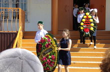 Гости из Альметьевска 3 мая возложили венок к монументу павшим в ВОВ. Они почтили их память минутным молчанием.