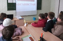 Башлангыч класс укучылары белән Әфганстан сугышы турында әңгәмә уздырылды. Укучыларга бу турыда Аскарова Ф.Х. сөйләде. Ул балаларга аңлаешлы итеп әңгәмә үткәрде, презентация күрсәтте.