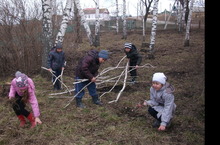 Мәктәп янын җыештыру дәвам итә. 4 класс укучылары да бакчаны җыештырырга чыктылар. Алар чыбык-чабык, кипкән үләннәрне, төрле чүпләрне җыйдылар. Башка класс укучылары да бу эштән читтә калмый.