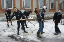 8 апрель көнне 6-7 нче класс укучылары мәктәп яны территориясендәге сукмакларны кардан арындырдылар, бозларны ваттылар