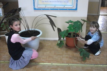 Безнең укучыларыбыз гөлләр яраталар. Бүген алар гөлләрне зур чүлмәкләргә күчереп утырттылар.