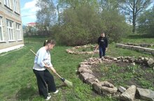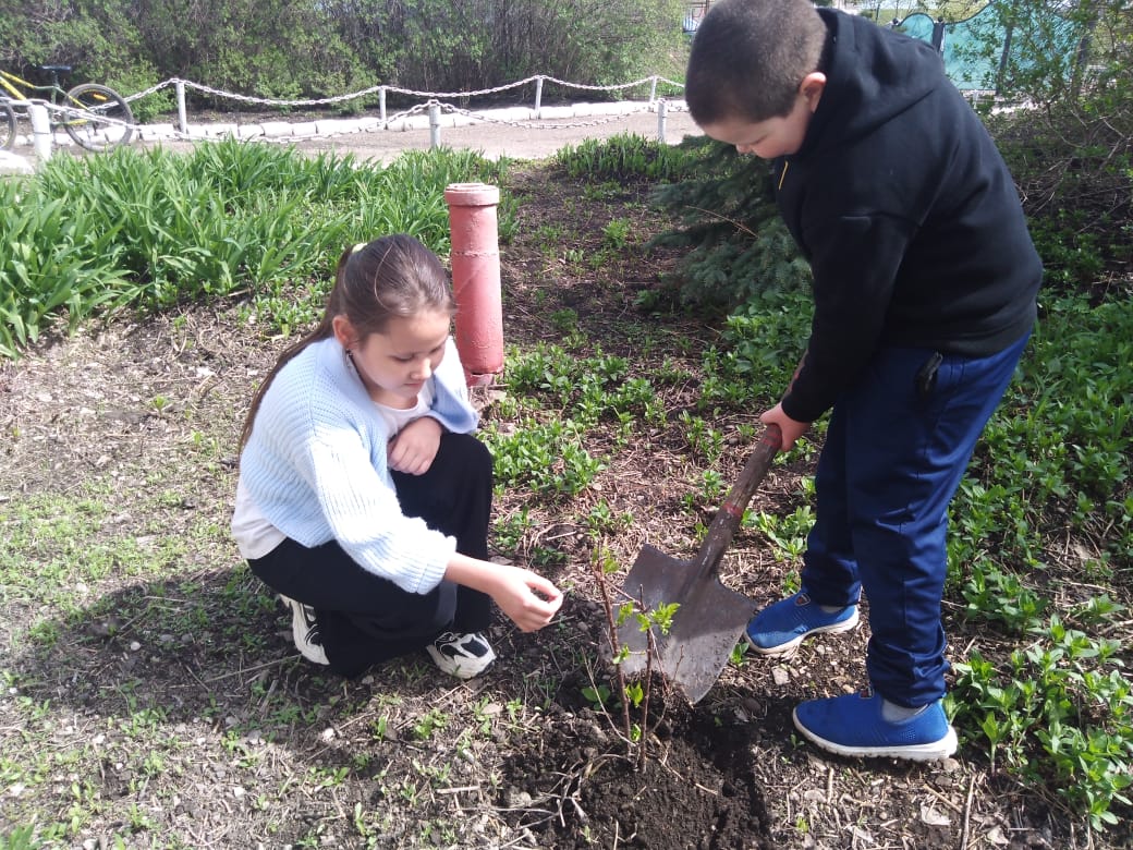 - уборка территории школы с Эколятами, учащиеся 2 класса.