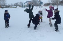 Башлангыч класс укучылары саф һавада уеннар уйнарга чыктылар. Алар сәламәтләренә игътибар итәләр.