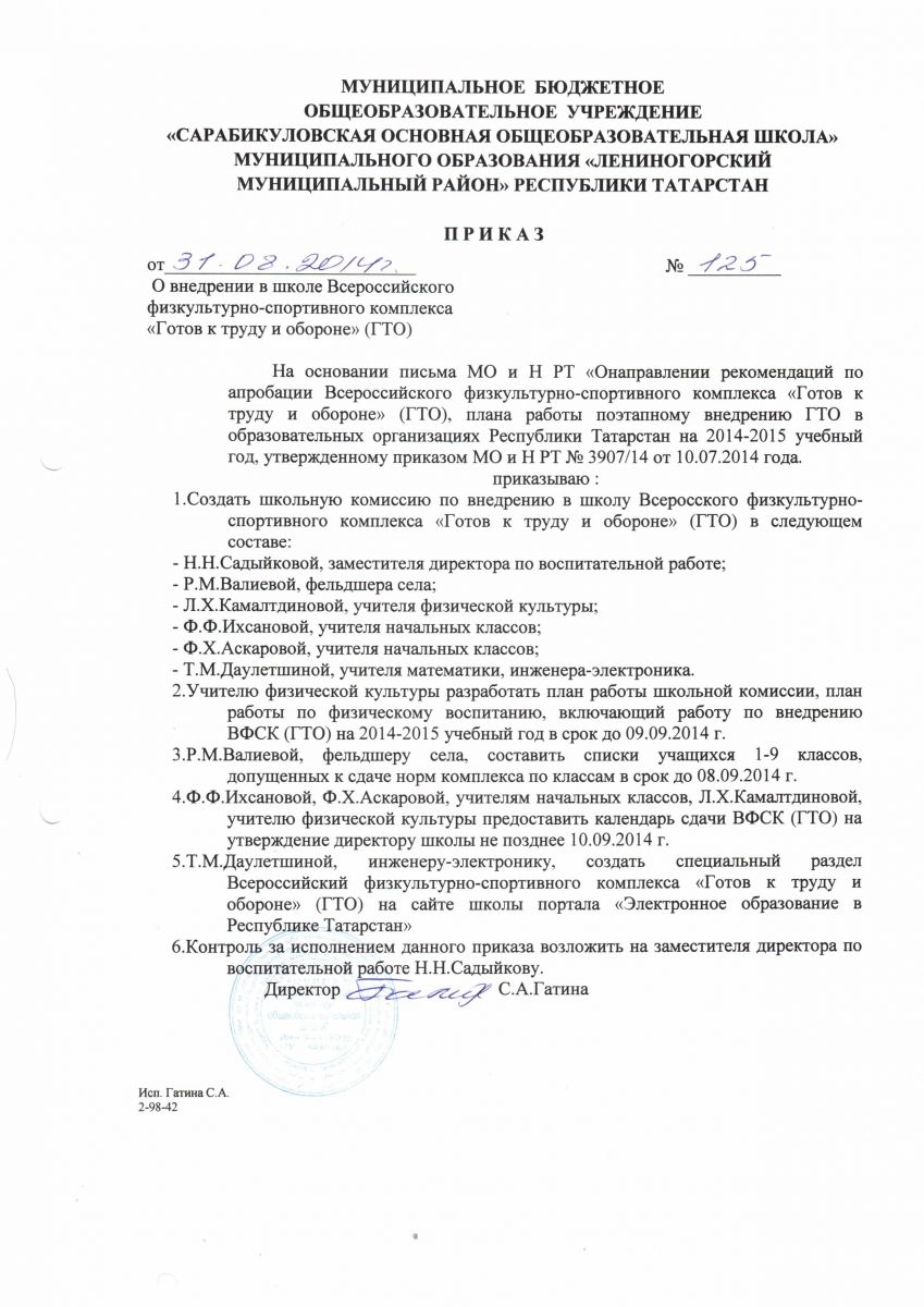 24 марта 2014 года президент России подписал указ, которым постановил до 15 июня 2014 утвердить «Положение о Всероссийском физкультурно-спортивном комплексе „Готов к труду и обороне“ (ГТО)», до 1 августа разработать сопутствующие нормативно-правовые акты и ввести комплекс в действие с 1 сентября. Соответственно достигнутым уровням планируются надбавки к стипендиям и заработным платам. Предусматриваются возможность учета необязательных испытаний и национальных видов спорта. Проект положения находился в стадии публичного обсуждения с 3 по 18 апреля.