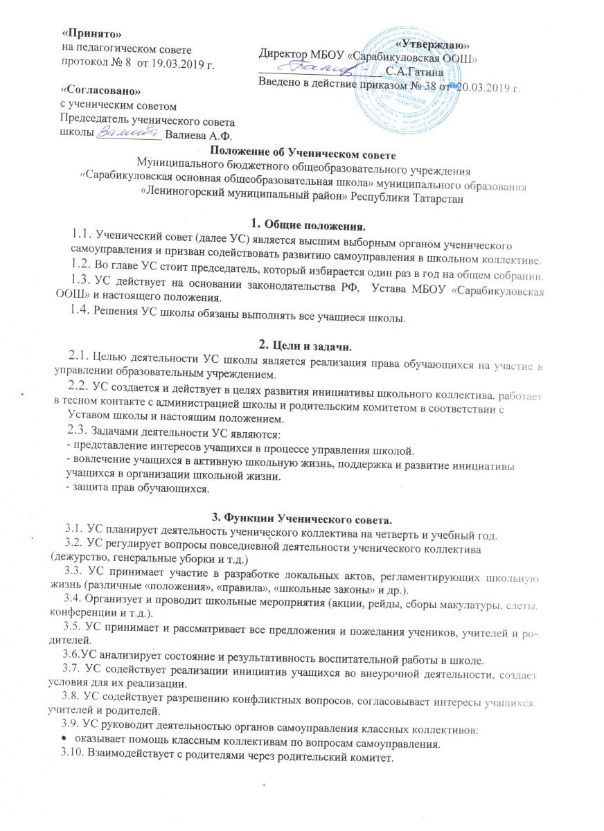 Положение об ученическом совете