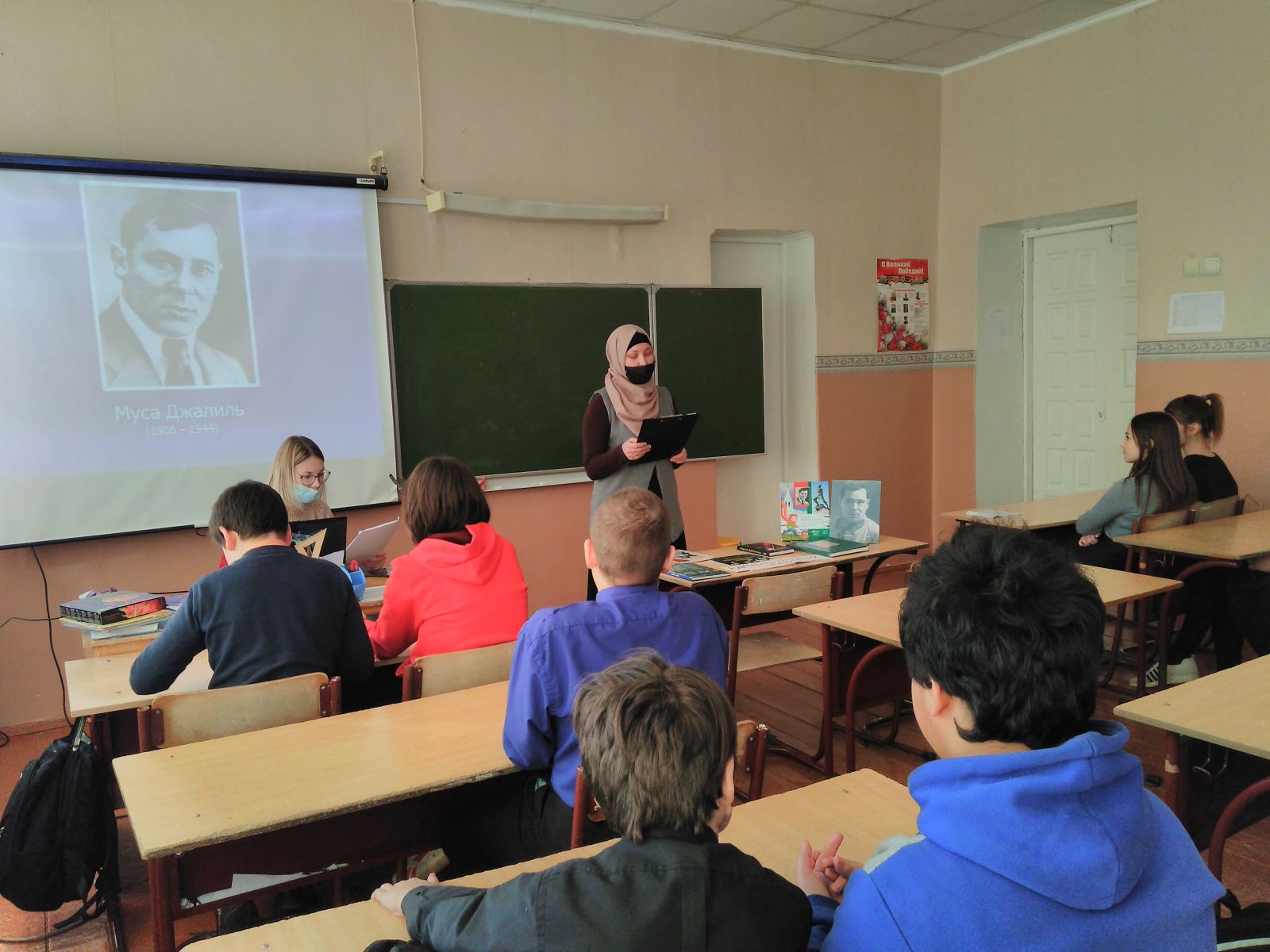Многие знают, что 15 февраля особенная дата, потому что в этот день не только в нашей республике, но и за ее пределами празднуют день рождения великого татарского поэта Мусы Джалиля. Имя нашего великого поэта Мусы Джалиля является для каждого из нас символом мужества, отваги, преданности Родине, гражданской ответственности и преданности долгу поэта. На уроках родного языка учащиеся с 1 по 9 класс познакомились с жизнью и творчеством поэта, читали стихи, слушали песни.