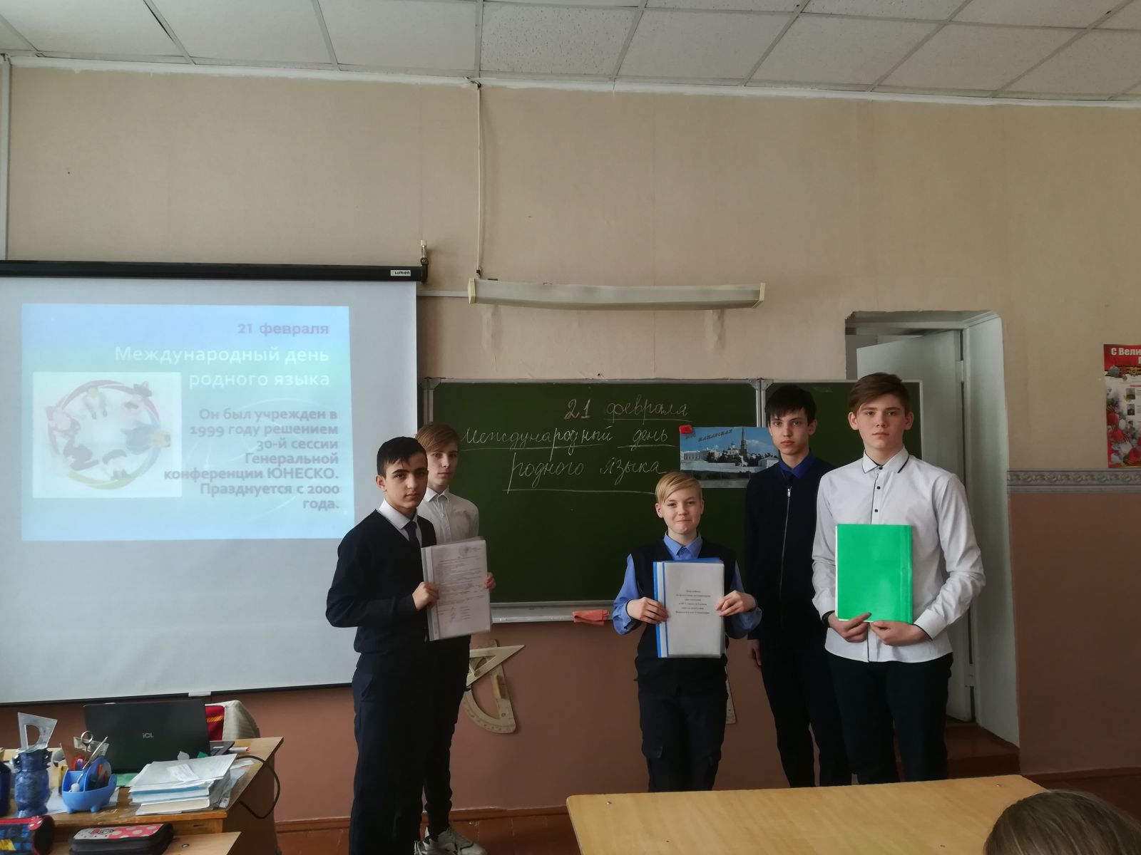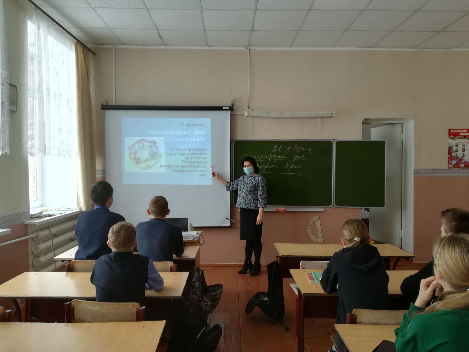 10 февраля, совместно со школьным библиотекарем, учителя родного языка Гарифуллина Г.М и Галеева М.Ш провели мероприятие, посвященное Дню Родного языка. На данном мероприятии учащихся ознакомили с историей возникновения и богатством, красотой, величием родного языка. Затем учащиеся отгадывали загадки, составляли пословицы о языках, разгадывали занимательные ребусы, участвовали в литературных викторинах, познакомились с толковым словарём С.И. Ожегова и «Словарѐм живого великорусского языка» В.И. Даля. В конце мероприятия посмотрели интересный и поучительный видеоролик. Учащиеся школы остались довольны проведённым мероприятием.