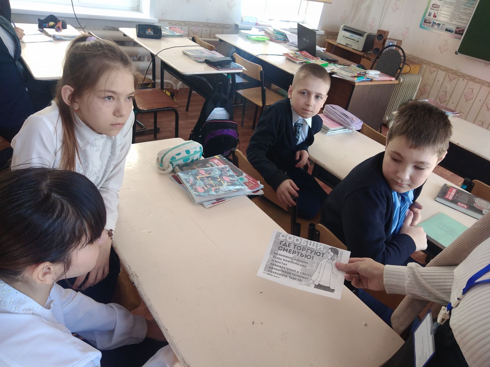 Опубликовано: 21.03.2024С 19 по 22 марта 2024 года в МБОУ «ООШ №1» прошла ежегодная Всероссийская антинаркотическая акция «Сообщи, где торгуют смертью». В рамках акции участники проекта «Самостоятельные дети» провели информационный классный час «Сообщи, где торгуют смертью», раздали листовки учащимся школы. Целью акции является организация разъяснительной работы с учащимися о вреде немедицинского потребления наркотических средств и психотропных веществ, а также об ответственности за участие в их незаконном обороте.
