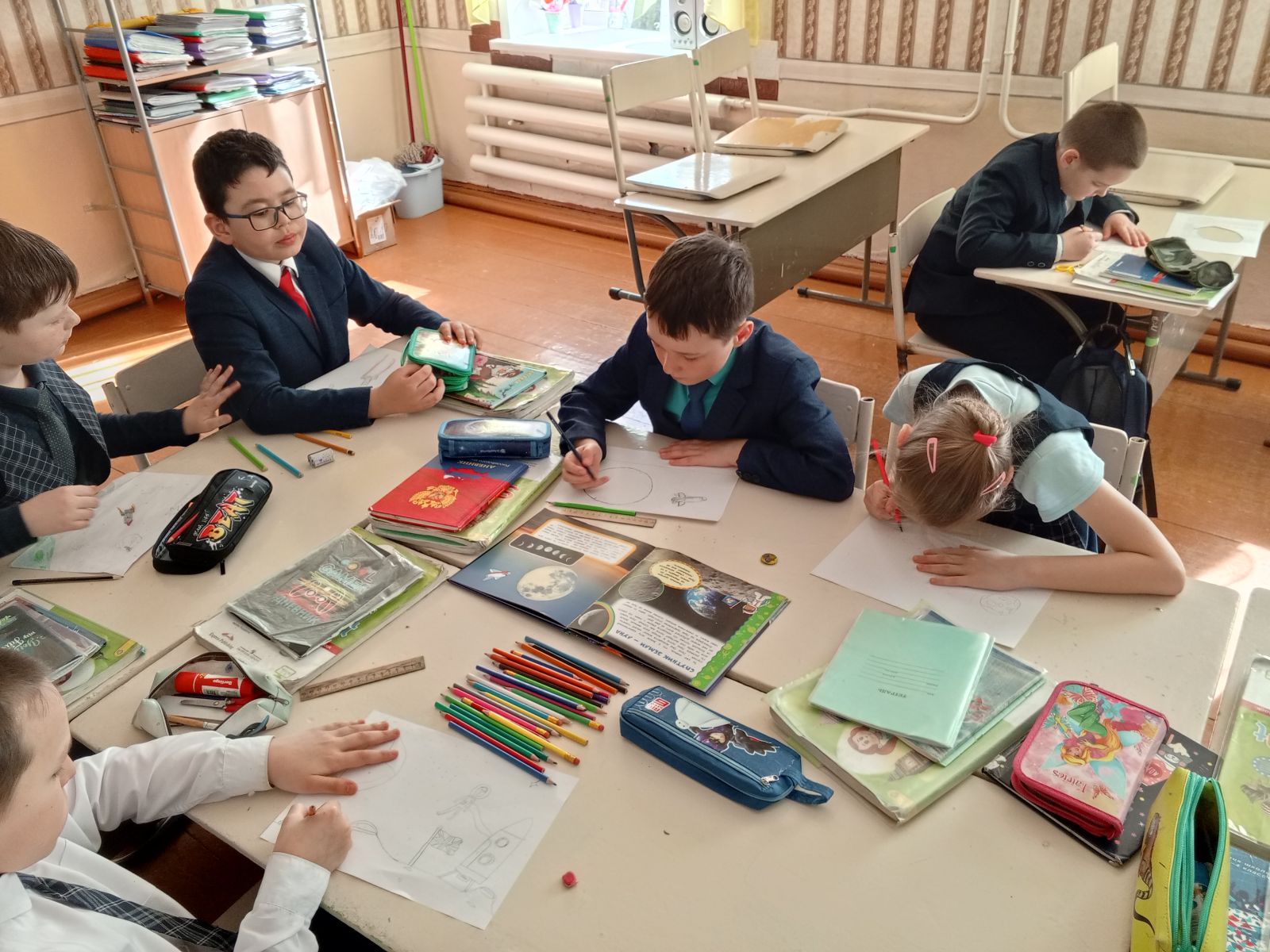 В МБОУ «ООШ №1» прошли классные часы в рамках курсов «Разговоры о важном», а также «Россия – мои горизонты», посвященные празднованию Дню космонавтики. Ученики 3 класса совместно с советником по воспитанию организовали выставку рисунков на тему «Мы выбираем Космос».