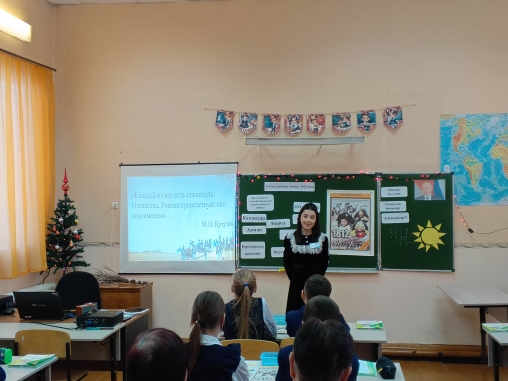 Внеурочное занятие по окружающему миру «Отечественная война 1812 года» (4 класс), Магомедова К.Б., учитель начальных классов 1 кв. категории МБОУ «ООШ №1», победитель регионального этапа Всероссийского конкурса «Учитель года Республики Татарстан - 2022», номинация «Педагогический дебют»;