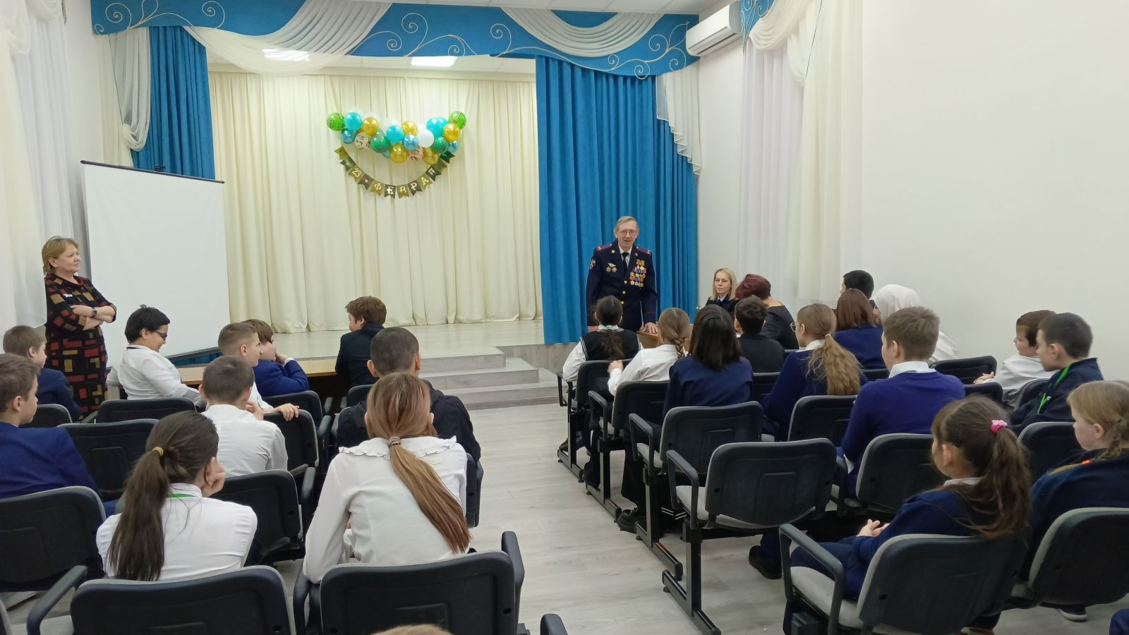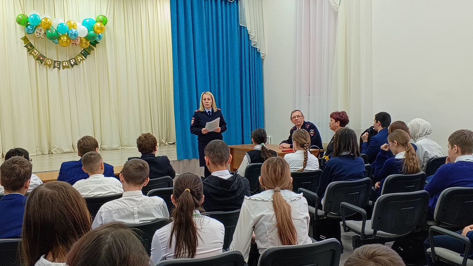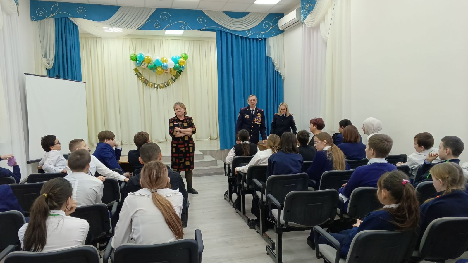 Начальник ОРЛС Шукова Е.С. познакомила учащихся с правилами поступления в Елабужское суворовское военное училище МВД России, куда можно поступить после 8 класса, и о Казанском юридическом институте МВД России.