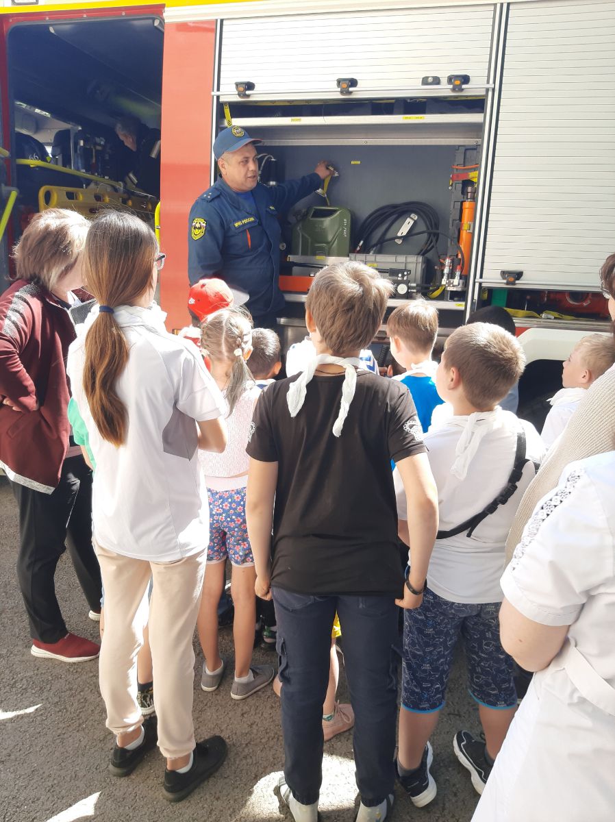После утренних мероприятий отряды отправились в поход: на экскурсию в ПЧ-66 и отрабатывали навыки по пожарной безопасности. Воспитанники прослушали беседу о комплектации пожарной машины, одевали каски, противогазы. Поближе познакомились с работой пожарных. Все очень понравилось, ребята были в восторге. Многие из них захотели в будущем свою жизнь связать с работой пожарного.