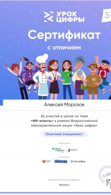 Опубликовано: 26.09.2025В рамках Всероссийского урока цифры, в 8 классе, прошел урок "ИИ- агенты". Ученики открыли мир технологий будущего и за активное участие получили сертификаты с отличием.