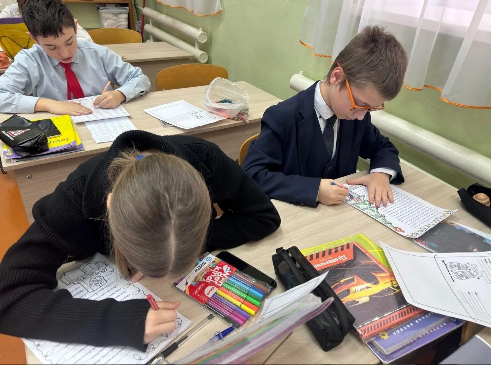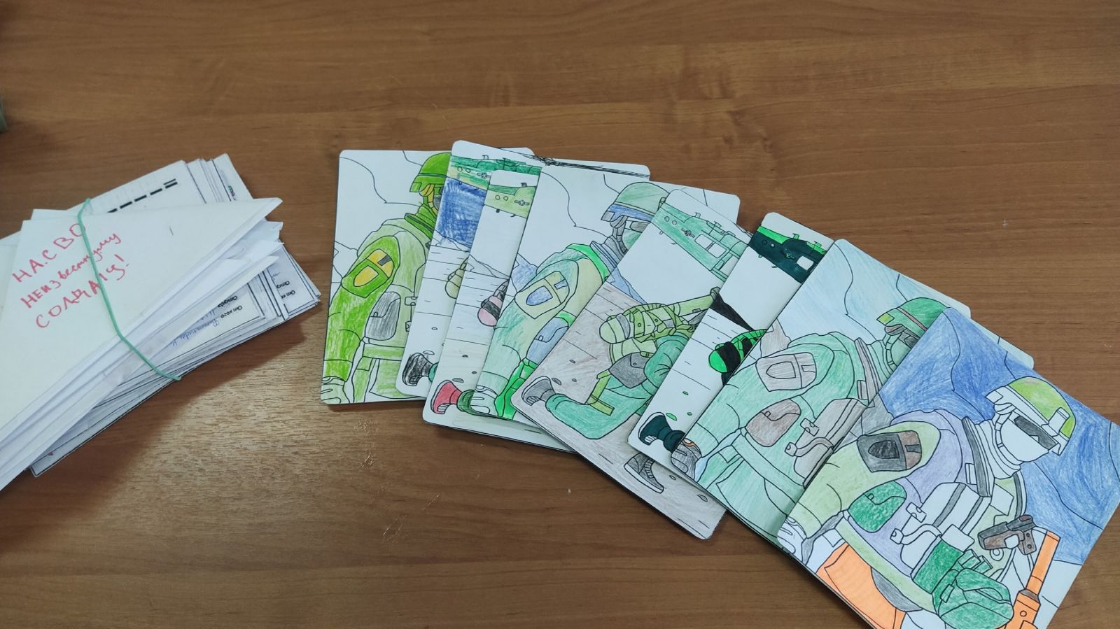 Вот и наши ребята продолжают писать письма и рисовать новогодние открытки для наших бойцов.