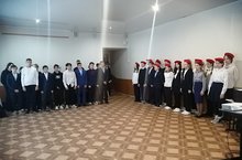 На линейке присутствовали члены Юнармейского отряда (руководитель Димиева Э.А.) и учащиеся 9а класса. -