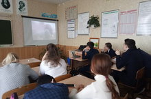 В рамках проведения патриотического месячника на уроках обж (учитель Димиева ЭА.) учащимся 9-11 классов был продемонстрирован художественный фильм «Солдатик».