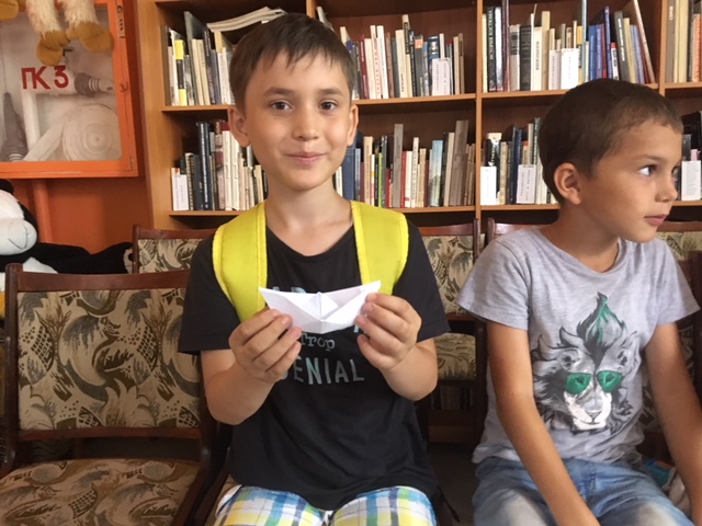 Сегодня ребят ждала занимательная программа в отделе искусств Центральной библиотеки города. Дети отправились в виртуальное путешествие по следам Жака Ива Кусто. Каждый с помощью техники оригами сделал свой кораблик, во время "путешествия" ребята отгадывали загадки, за правльные ответы получили сладкие призы.