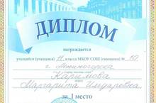Поздравляем Каримову Римму и Кузьмину Ирину - призеров муниципальной олимпиады по истории "Умники и Умницы". Объявляется благодарность за целенаправленную работу по формированию интереса к предмету и подготовку призеров Шарифуллиной А.Р.