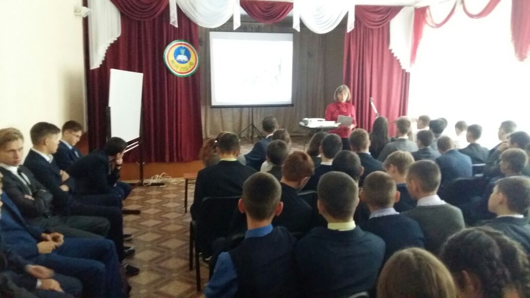 Затем учащиеся вспомнили события, произошедшие 1-3 сентября 2004 года в Бесланской школе, посмотрели видеофильм "Когда мужчины плачут..." о простых людях, которые выносили под пулями из горящей школы детей, как они рисковали своими жизнями ради спасения невинных душ. Также учащиеся узнали о "Городе Ангелов"- мемориальном кладбище, где похоронены жертвы этого теракта - 186 детей, которым не суждено было закончить школу. .