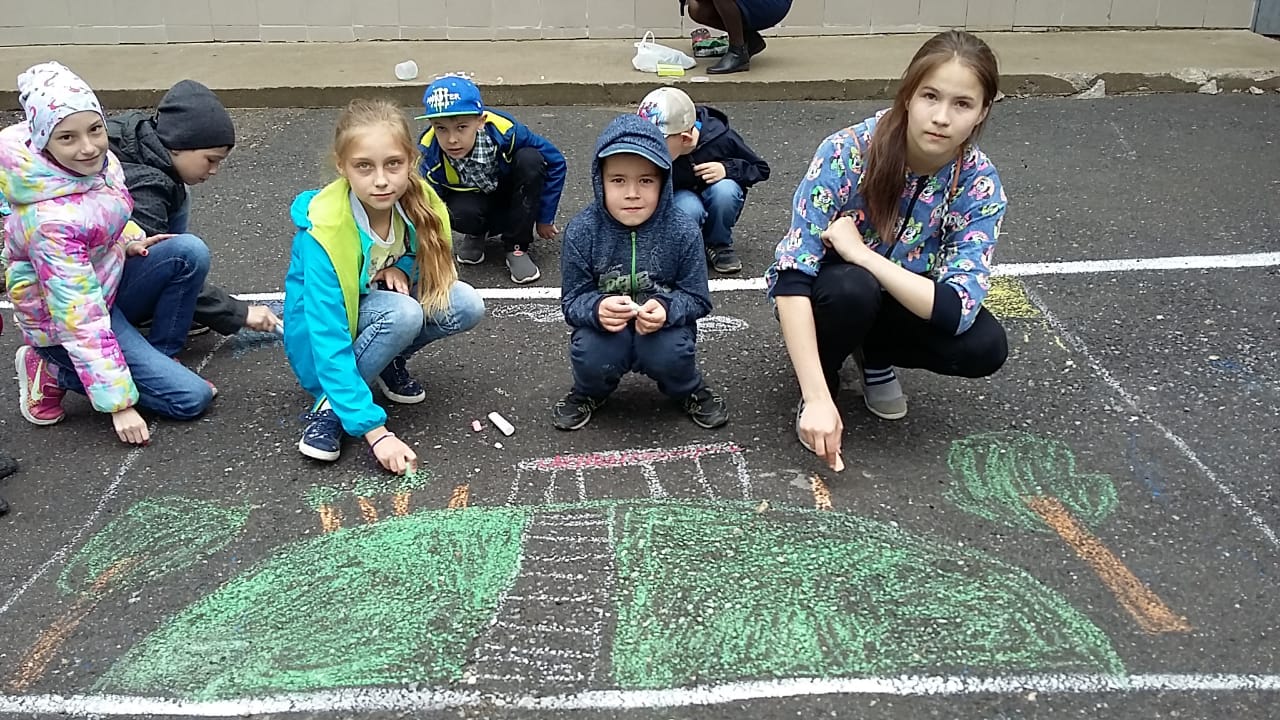 После завтрака все дети отправились на конкурс рисунков на асфальте «Мой любимый город».